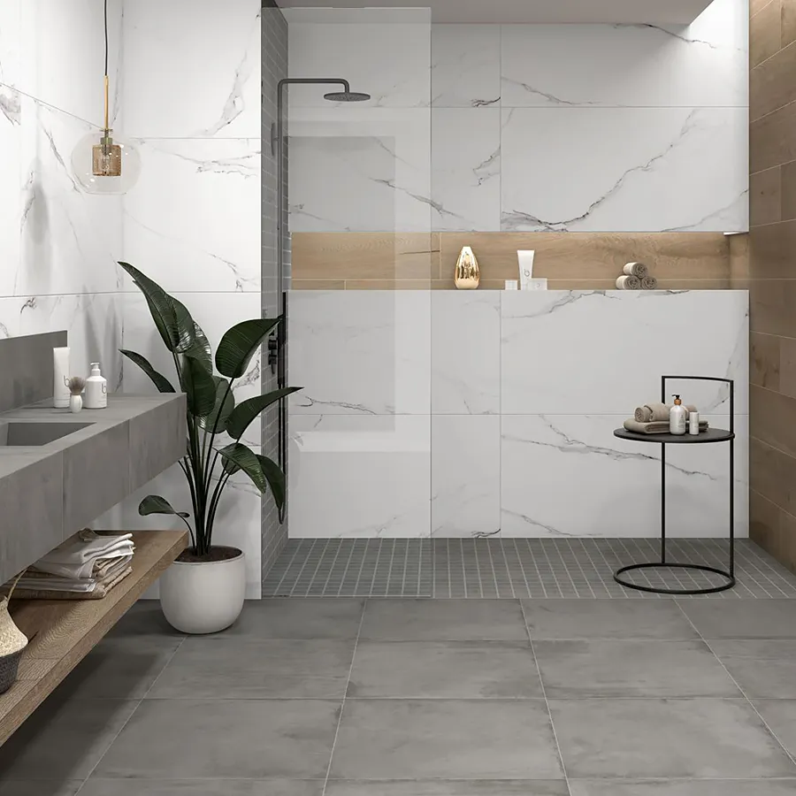 Visoko kvalitetna gres ploščica v imitaciji naravnega kamna z nežnimi žilami.